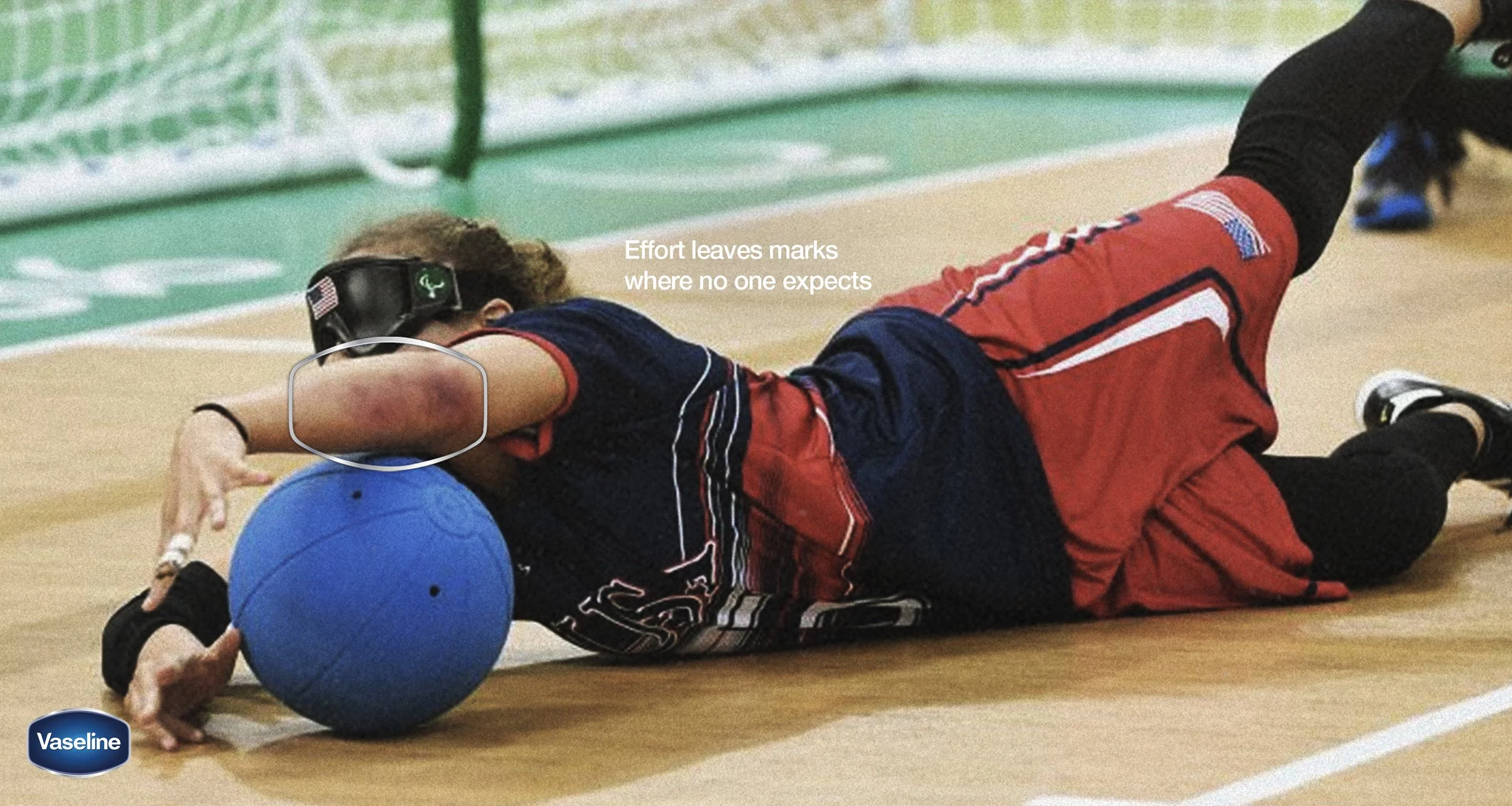 Paralympic athletes develop calluses and scars in unexpected areas due to constant friction with prosthetics and assistive devices, yet these marks of effort remain largely unseen by society. Vaseline highlights them through outdoor ads and the #UnseenMarks_Challenge, revealing that true symbols of dedication exist everywhere and in everyone.